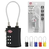 【米国運輸保安局公認】TSAロック 南京錠 小型 ダイヤル式 ワイヤー 軽量 ロック 暗証番号タイプ 屋外 防水 錆びない 防犯グッズ 旅行用 3桁ダイヤル式 ブラック シルバー スーツケース用 ジムロッカー 荷物 海外旅行 おしゃれ 鍵式 ワイヤー セキュリティロック 防犯 南京錠 TSA認証 (ブラック, 1点)